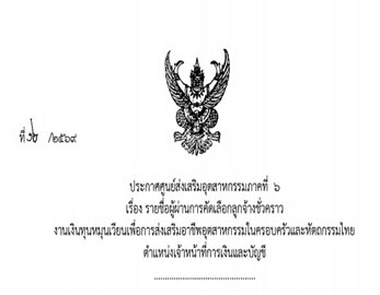 ประกาศผู้มีสิทธิ์ สอบคัดเลือก งานเงินทุนหมุนเวียนเพื่อการส่งเสริมอาชีพอุตสาหกรรมในครอบครัวและหัตถกรรมไทย (ตำแหน่ง เจ้าหน้าที่การเงินและบัญชี)