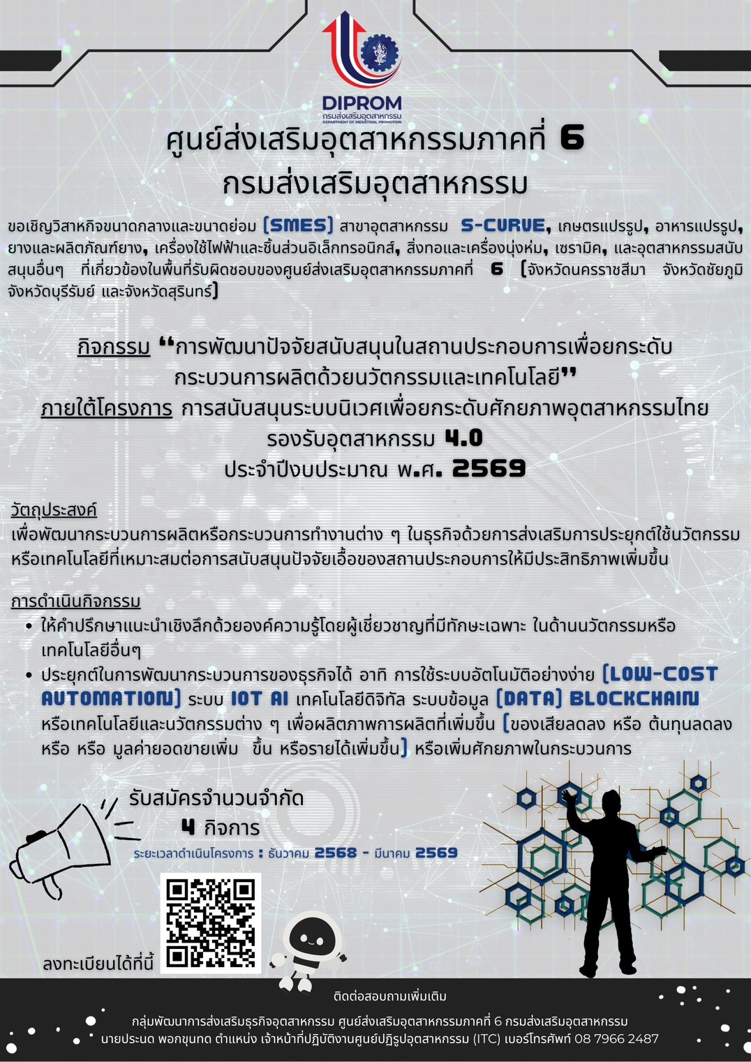 👉🏻 ภายใต้โครงการ การสนับสนุนระบบนิเวศเพื่อยกระดับศักยภาพอุตสาหกรรมไทยรองรับอุตสาหกรรม 4.0 ประจำปีงบประมาณ พ.ศ. 2569