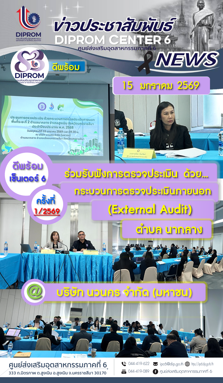 ดีพร้อมเซ็นเตอร์ 6 เข้าร่วมประชุมตรวจประเมิน ด้วยกระบวนการตรวจประเมินภายนอก(External Audit) จังหวัดนครราชสีมา ครั้งที่1/2569