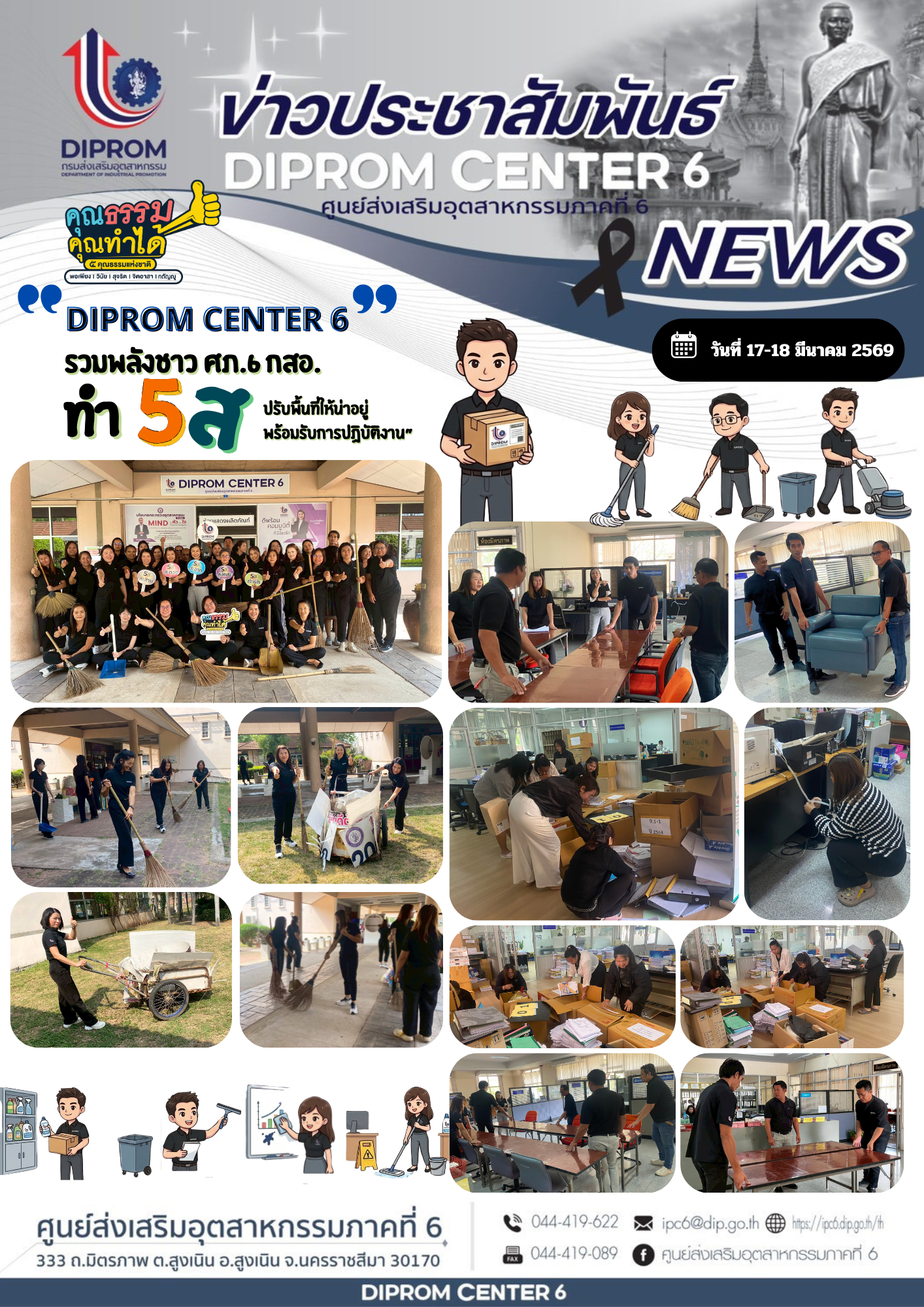 👧🏻 นางสาวสุวิมล จินตวัฒน์ ผู้อำนวยการศูนย์ส่งเสริมอุตสาหกรรมภาคที่ 6 พร้อมเจ้าหน้าที่ DIPROM CENTER 6 จัดกิจกรรม “5ส” 🗑️🚮