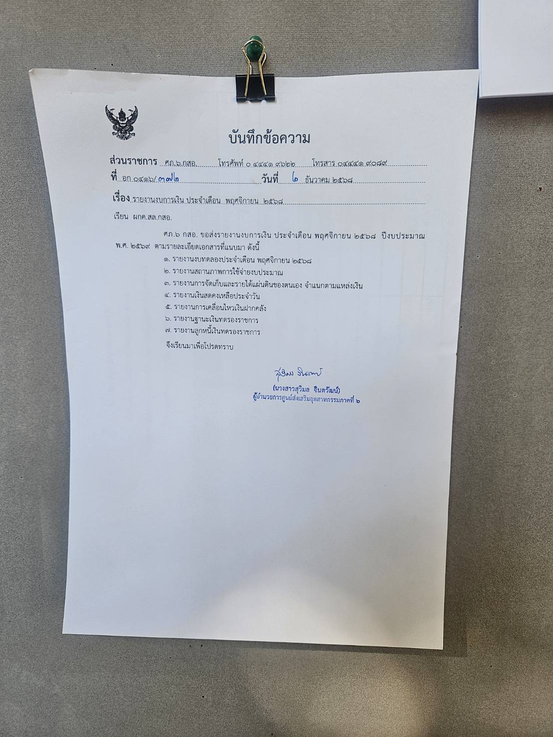 ประกาศ รายงานงบการเงิน ประจำเดือน พฤศจิกายน 2568