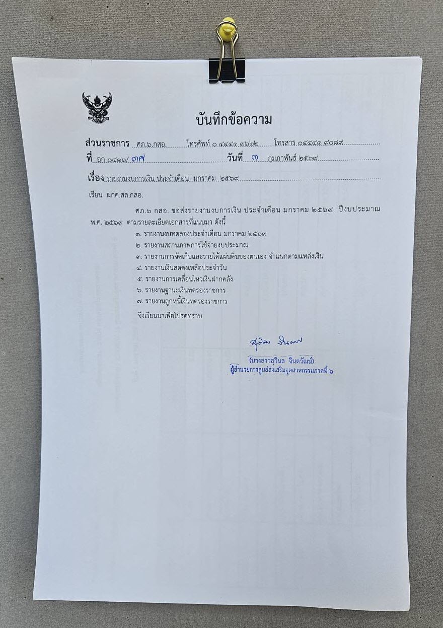 รายงานงบการเงิน ประจำเดือน มกราคม 2569